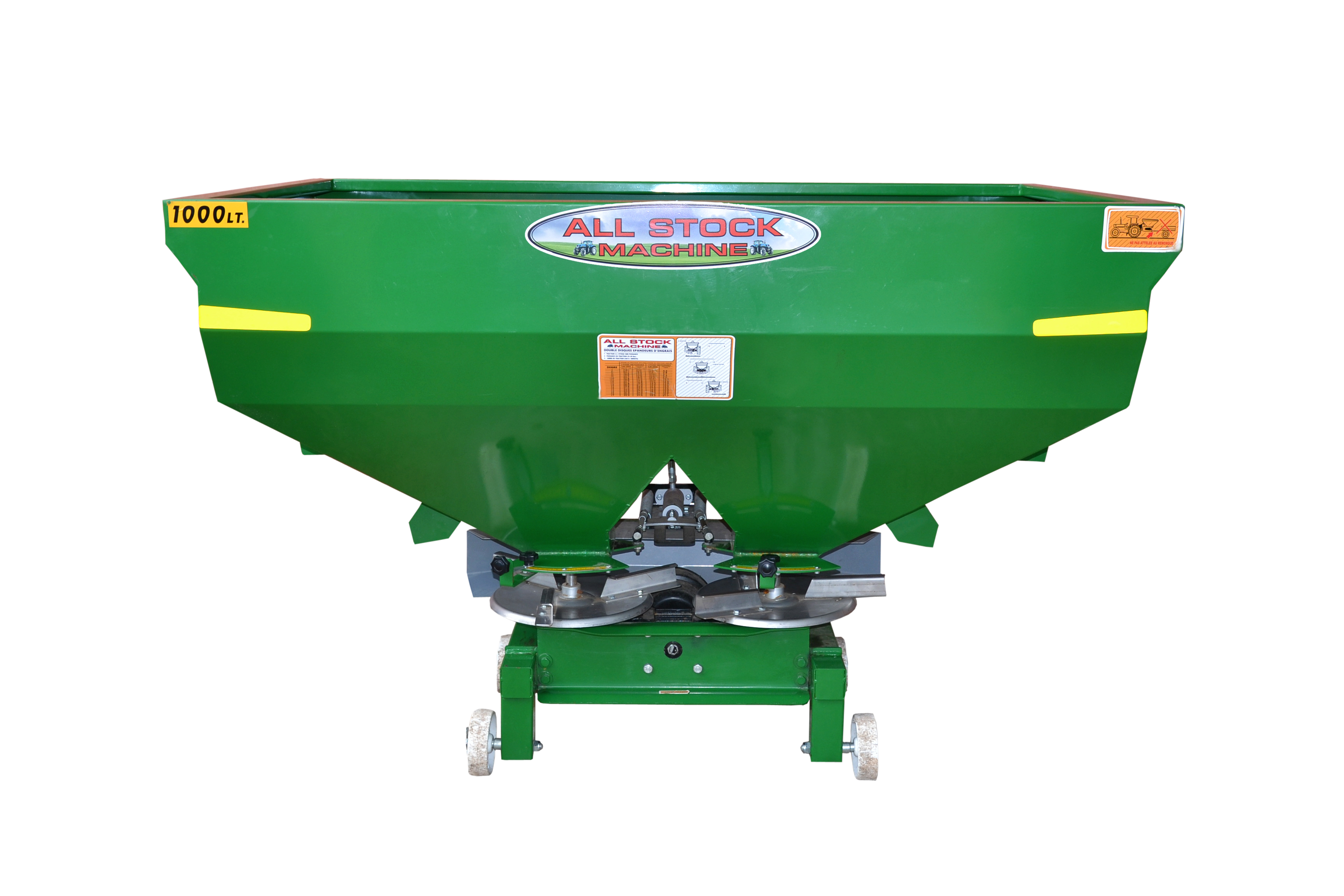 L'épandeur d'engrais ALL STOCK à deux disques est une machine idéale qui peut diffuser l'engrais au moyen de ses disques et ailes sur une distance idéale de manière équilibrée et régulière et offre ainsi le maximum d'avantages de la quantité d'engrais utilisée. La norme d'engrais est ajustée en changeant avec la poignée de réglage l'ouverture des couvercles au bas du réservoir de grande capacité où sont placés les minéraux et l'engrais en poudre. La distribution de l'engrais sur la ferme est meilleure en raison des disques jumelés. Comme la distance où l'engrais est diffusé est longue, des économies sont réalisées sur le temps et, comme l'uniformité de la distribution est bonne, des économies sont réalisées sur l'engrais à utiliser.